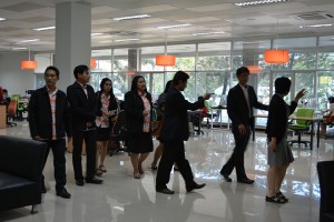 นายพงศ์พิชญ์ ต่วนภูษา ผู้ช่วยอธิการบดี มทร.ธัญบุรี และผู้บริหาร สำนักวิทยบริการและเทคโนโลยีสารสนเทศ ให้การต้อนรับคณะอาจารย์จากวิทยาลัยเทคนิคอุตสาหกรรมยานยนต์ เยี่ยมชมศึกษาดูงานห้องสมุด เมื่อวันอังคารที่ 24 ธันวาคม 2556 ณ อาคารวิทยบริการ