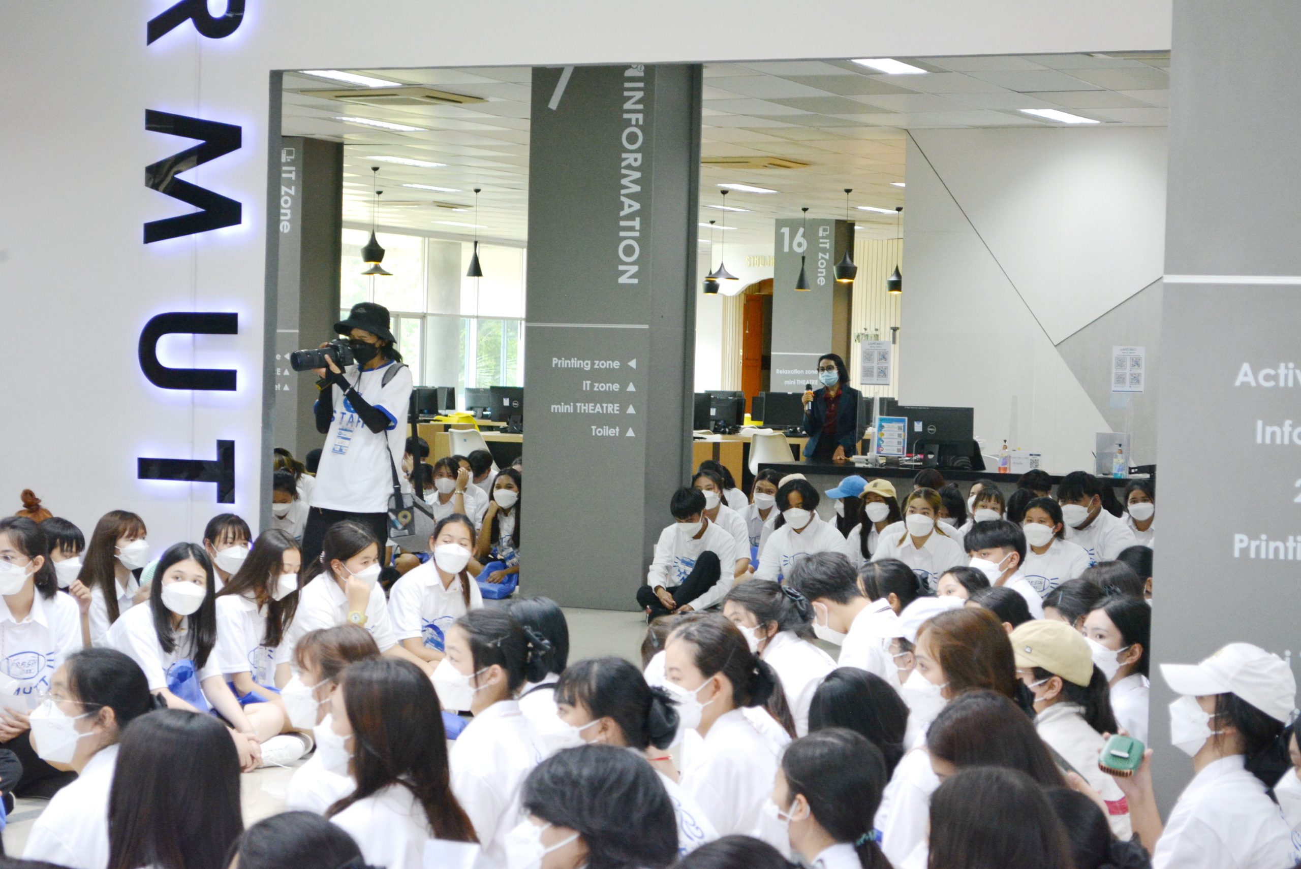 นางเยาวลักษณ์ แสงสว่าง หัวหน้าฝ่ายพัฒนาสารนิเทศอิเล็กทรอนิกส์ และ นางสมใจ วงศ์บุญรอด หัวหน้าฝ่ายบริการทรัพยากรสารนิเทศ พร้อมด้วยทีมงาน ต้อนรับนักศึกษาใหม่ ชั้นปีที่ 1 กิจกรรมเยี่ยมชมห้องสมุดในงานปฐมนิเทศนักศึกษาใหม่ ประจำปีการศึกษา 2565 รุ่นที่ 1 ได้แก่ คณะบริหารธุรกิจ คณะการแพทย์บูรณาการ และ คณะพยาบาลศาสตร์ รวมจำนวน1,462 คน วันที่ 22 มิถุนายน 2565 อาคารวิทยบริการ