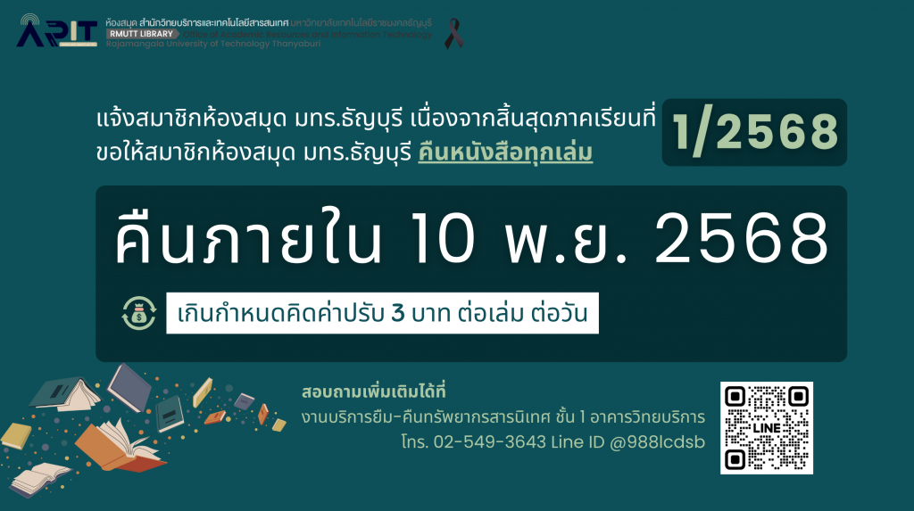 รศ.ดร.บุณฑริกา ทองดอนพุ่ม รองผู้อำนวยการสำนักวิทยบริการและเทคโนโลยีสารสนเทศ มทร.ธัญบุรี ได้นำทีมบุคลากรจากฝ่ายวิทยบริการ และ งานอาคารสถานที่ เข้าศึกษาดูงาน ณ หอสมุดป๋วย อึ๊งภากรณ์ และศูนย์การเรียนรู้มหาวิทยาลัยธรรมศาสตร์ เมื่อวันที่ 26 พฤษภาคม 2568 เวลา 09.00-12.00 น.
