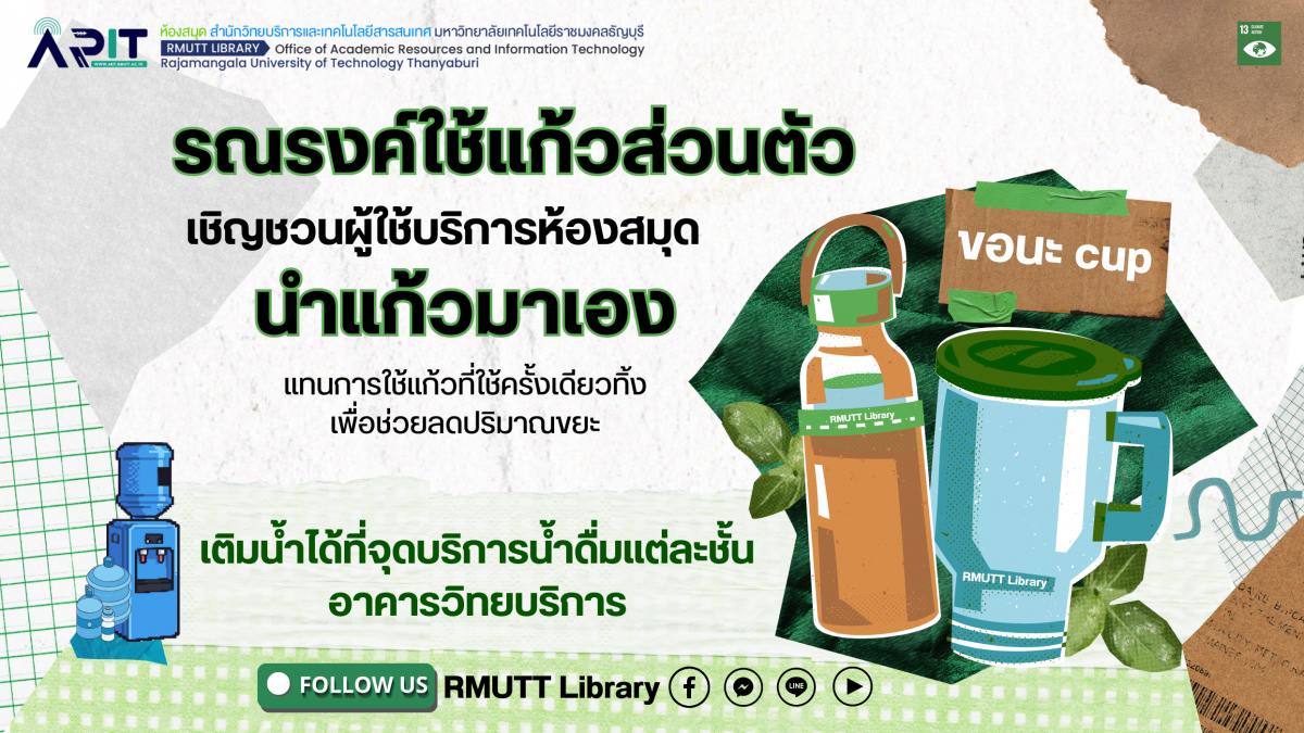 ห้องสมุด มทร.ธัญบุรี เชิญชวนผู้ใช้บริการนำแก้วน้ำส่วนตัวมาเอง แทนการใช้แก้วที่ใช้ครั้งเดียวทิ้ง เพื่อช่วยลดปริมาณขยะ♻️ และเติมน้ำได้ที่จุดบริการน้ำดื่มแต่ละชั้นอาคารวิทยบริการ จำนวน 8 จุด ครอบคลุมพื้นที่ให้บริการและการเรียนรู้ ดังนี้