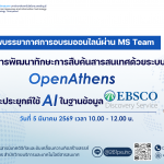 ภาพการอบรมออนไลน์ “พัฒนาทักษะการสืบค้นสารสนเทศด้วยระบบ OpenAthens และประยุกต์ใช้ AI ในฐานข้อมูล EBSCO Discovery Service”