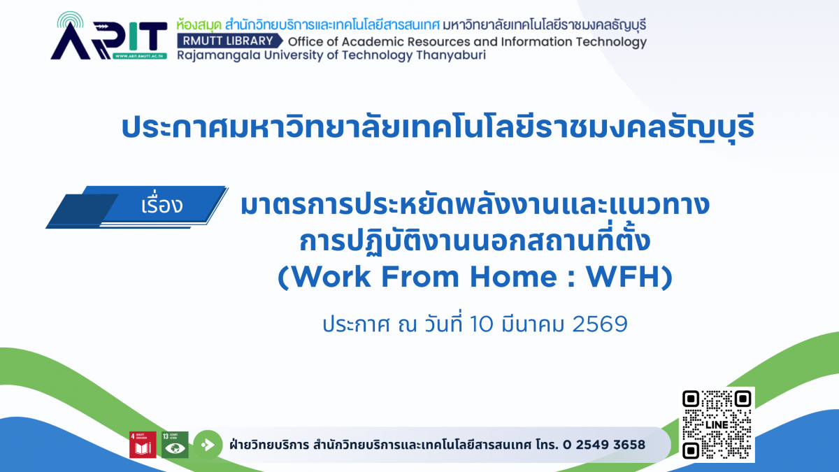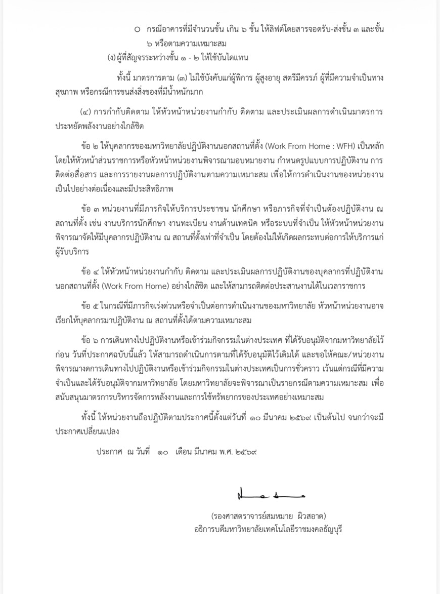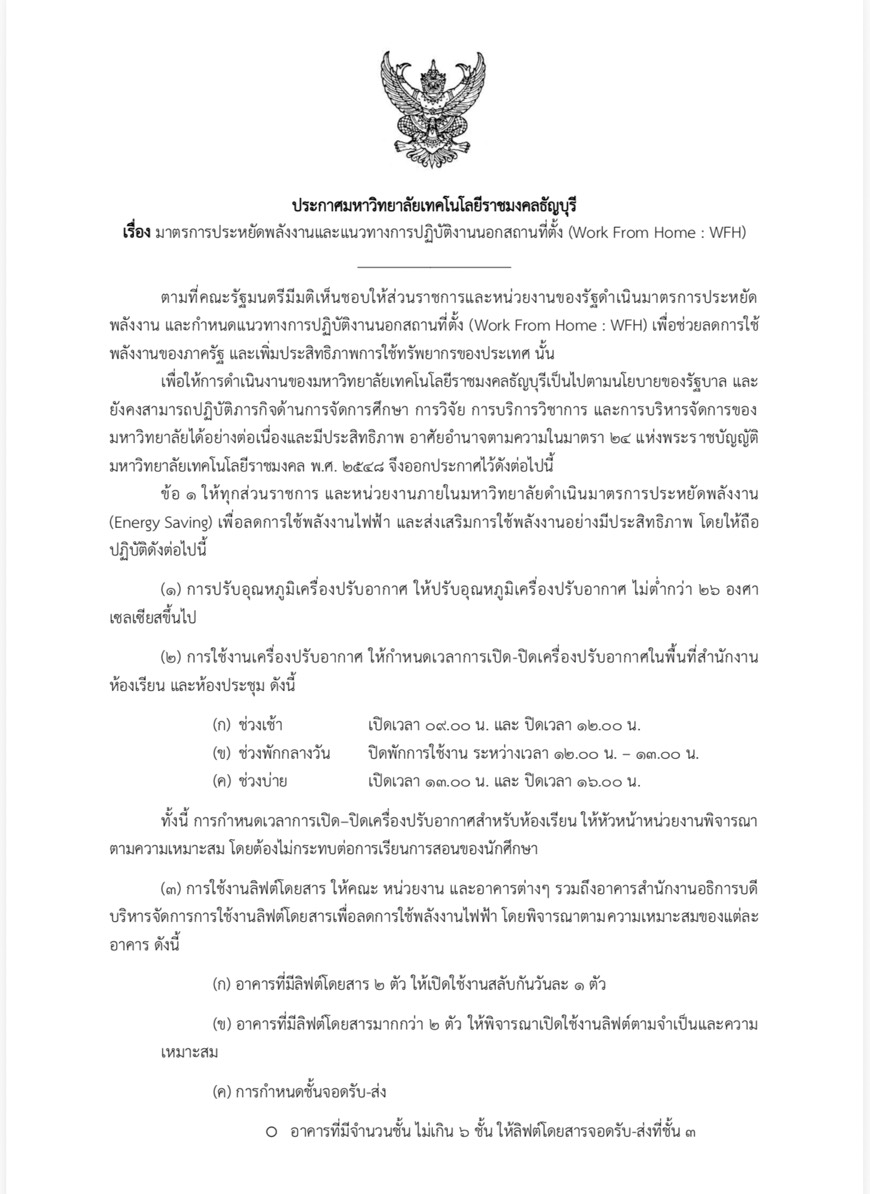 ประกาศ เรื่อง มาตรการประหยัดพลังงานและแนวทางการปฏิบัติงานนอกสถานที่ตั้ง (Work From Home : WFH)