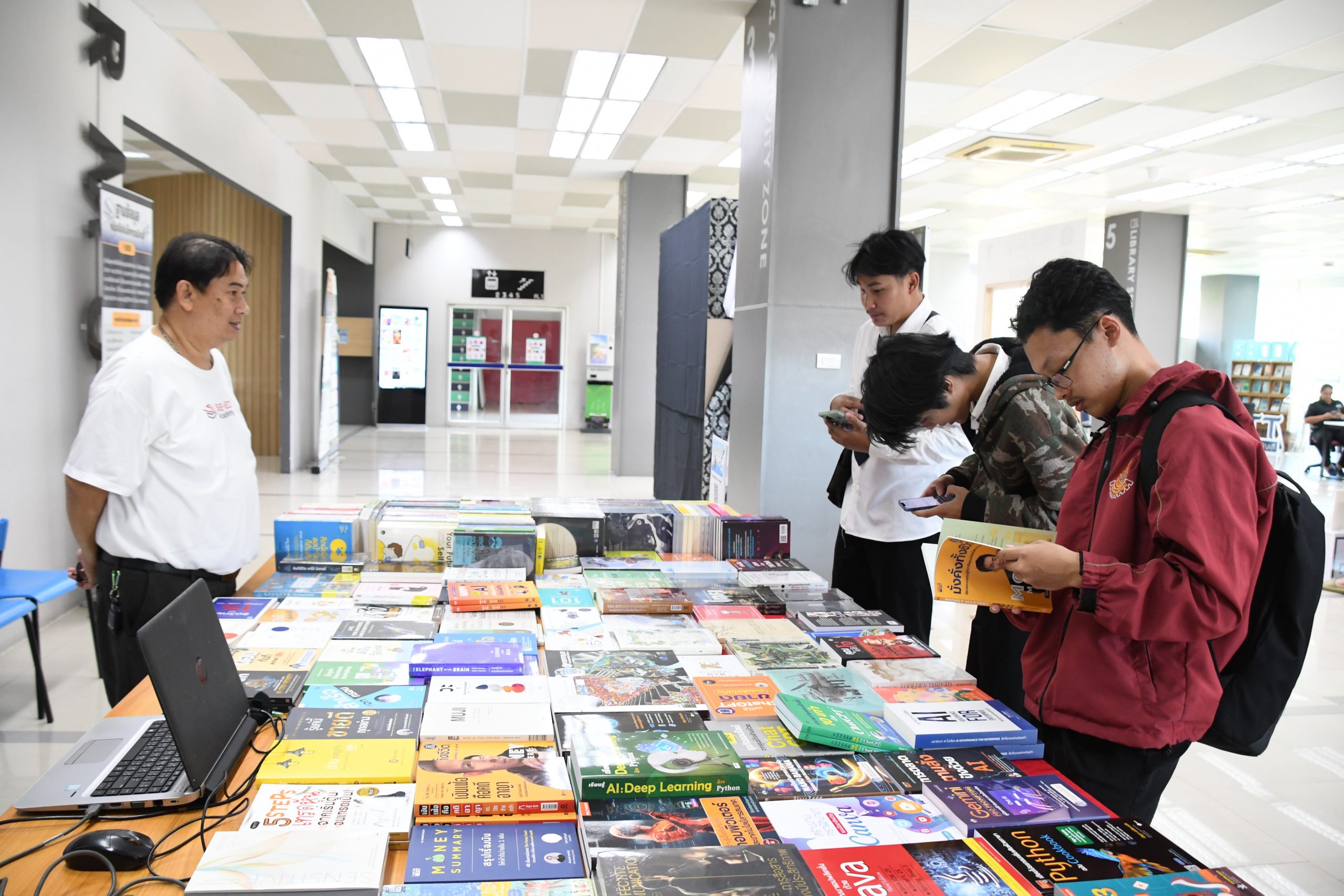 สำนักวิทยบริการและเทคโนโลยีสารสนเทศ มหาวิทยาลัยเทคโนโลยีราชมงคลธัญบุรี จัดกิจกรรม “Book Fair 2026” เพื่อส่งเสริมให้ห้องสมุดเป็นมากกว่าแหล่งรวบรวมทรัพยากรสารสนเทศ แต่เป็น “พื้นที่แห่งการเรียนรู้ (Learning Space)” ที่เปิดโอกาสให้ผู้ใช้บริการได้มีส่วนร่วมอย่างแท้จริง ภายในงานประกอบด้วยกิจกรรมหลากหลาย อาทิ การแนะนำหนังสือใหม่ การรีวิวหนังสือ (Book Review) การจัดจำหน่ายหนังสือจากสำนักพิมพ์ชั้นนำ ได้แก่ ร้านหนังสือ SE-ED, ศูนย์หนังสือจุฬาฯ, ศูนย์หนังสือมหาวิทยาลัยเกษตรศาสตร์ตลอดจนการเปิดโอกาสให้ผู้ใช้บริการมีส่วนร่วมในการเสนอแนะและคัดเลือกทรัพยากรสารสนเทศเข้าสู่ห้องสมุด ซึ่งสะท้อนแนวคิด “User-Centered Library” อย่างเป็นรูปธรรม